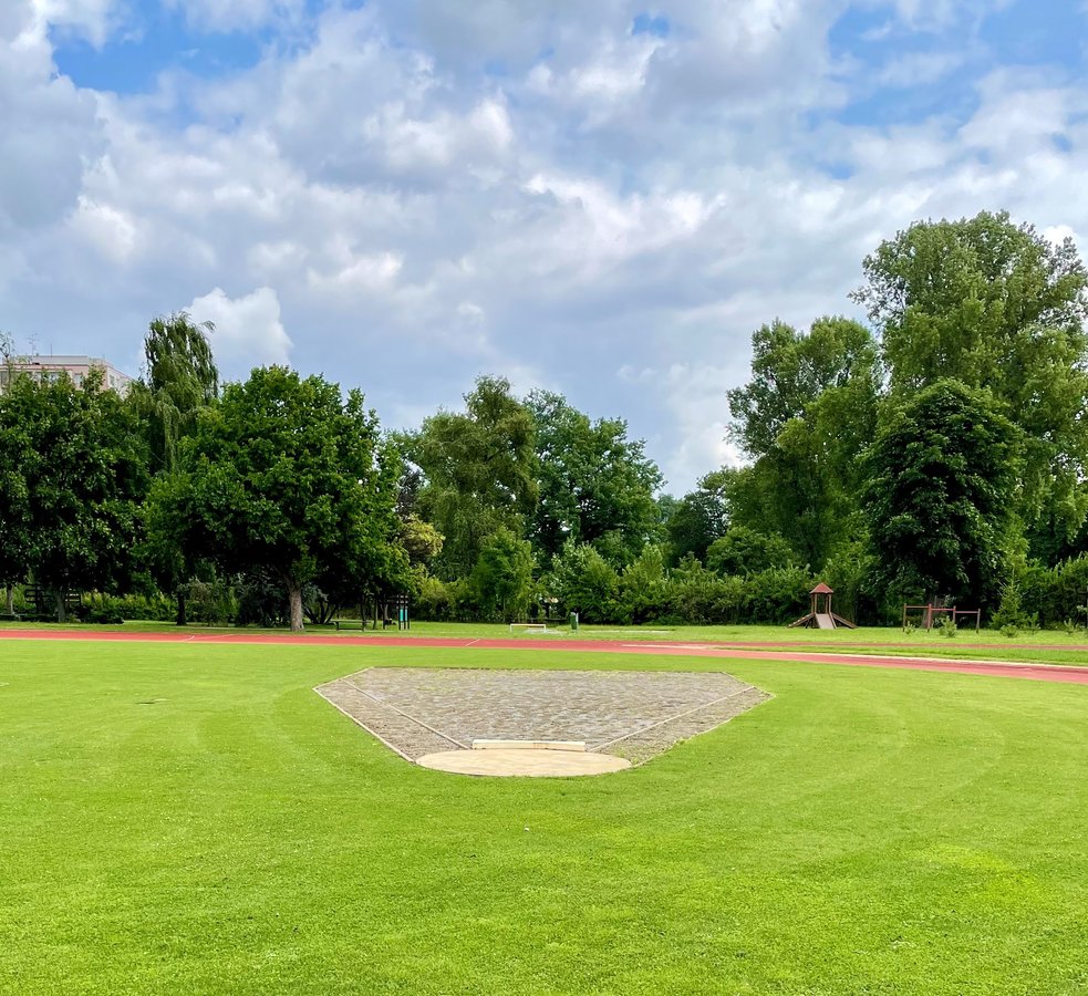 - Travnaté hřiště na malou kopanou uvnitř běžeckého oválu