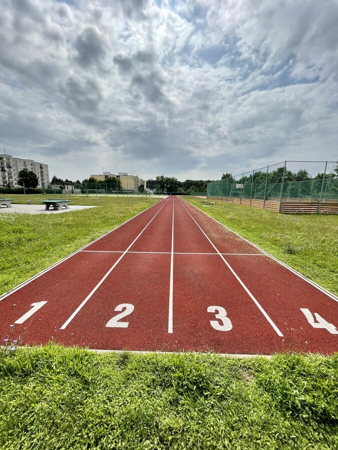 - Atletický ovál (délka 250 m) – polyuretan
