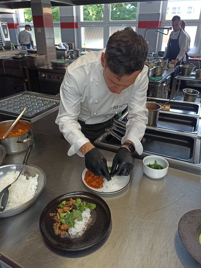 Oba šéfkuchaři se svým týmem však byli ve školách přítomni od samého rána, kdy zde vystřídali místní personál kuchyně, aby dětem sami uvařili. „V ZŠ Prodloužená je čekala příprava jídel pro celkem 475 strávníků, věřím, že i pro takové profesionály, kterými pánové Křížek a Roith bezpochyby jsou, to muselo být opravdu náročné. Nicméně se s tím vypořádali skvěle, děti byly z jejich přítomnosti nadšené a překvapené, že jim vaří muži. Šéfkuchaři do jídelníčku zařadili jídla, jako krém z karamelizovaného celeru, cizrnové kari s jasmínovou rýží a kuřecí na paprice s tarhoňou,“ doplňuje Dana Šťásková z odboru školství, kultury a sportu pardubického magistrátu, která se na organizaci obou workshopů podílela. Druhý gastroworkshop na MŠ Brožíkova byl pak zaměřen spíš na menší strávníky. Během dne zde kuchaři připravili celkem 158 jídel pro 130 dětí a 28 dospělých. Kromě ochutnávek variací hlavních jídel zaměřených na rostlinné bílkoviny se tentokrát zaměřili na svačiny, které jsou nedílnou součástí jídelníčku v mateřinkách a předvedli, jak do nich zakomponovat luštěniny, zeleninu či celozrnné potraviny. Pomazánky tak servírovali s nachos, grahamovými tyčinkami nebo celozrnnou tortillou. Největší úspěch měly dýňové lívance s cizrnou. Společným tématem našich jídelen je také neplýtvání, proto šéfkuchaři představili i pokrmy, které lze připravit v desítkách variací podle kuchyňských zásob – jako například dětmi oblíbená frittata.