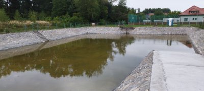Opravy břehů a odtěžení nánosů požární nádrže v Pardubicích - Doubravicích
