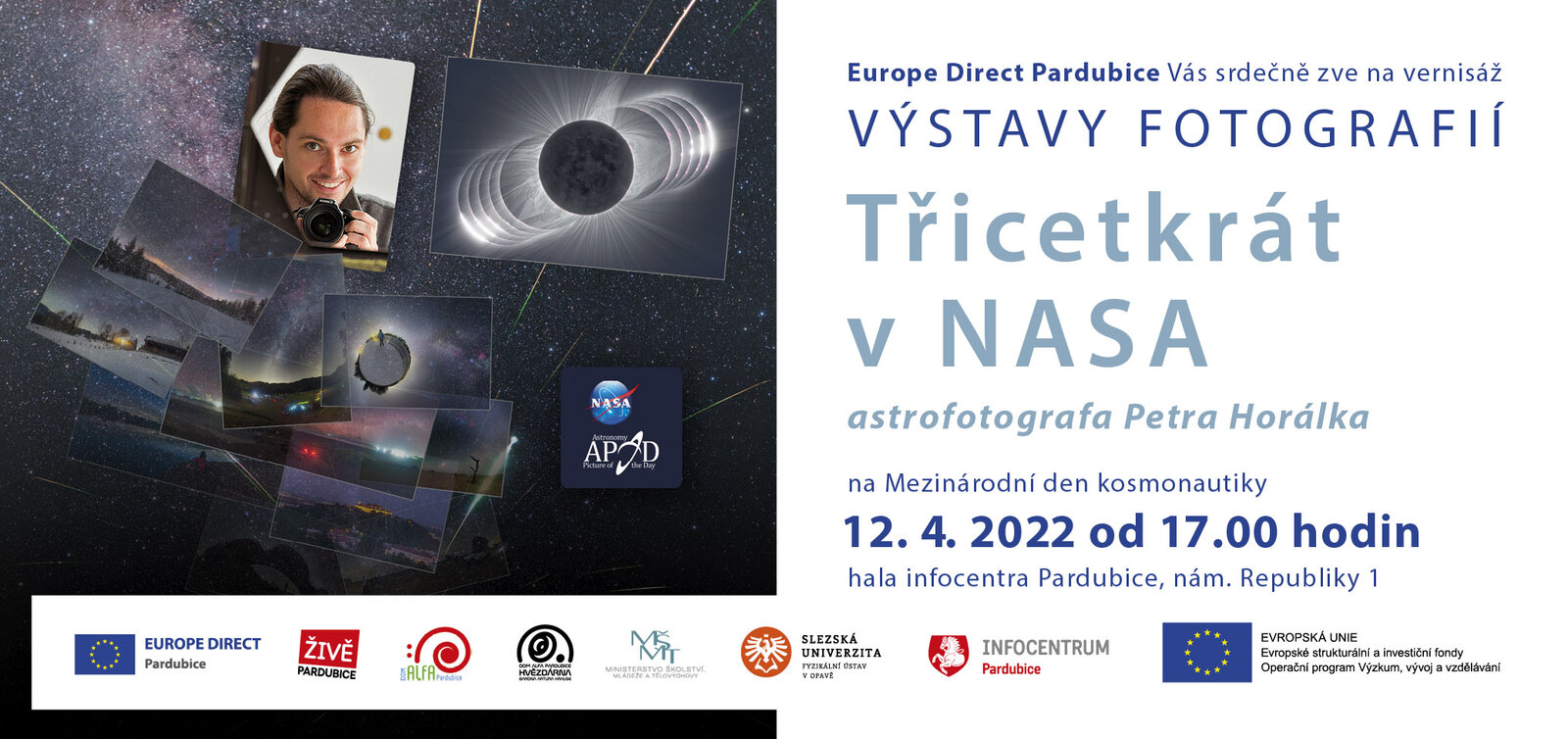 Od 5. do 30. 4. 2022 hostí hala Turistického informačního centra v Pardubicích unikátní výstavu, která zavede návštěvníky do vesmíru. Autorem astrofotografií je pardubický rodák Petr Horálek, fotograf, kreslíř, spisovatel, cestovatel a astronom. Od r. 2011 se Petr Horálek věnuje astrofotografii, přičemž jeho specializací je krajinářská astrofotografie. Jejím prostřednictvím zachycuje vzácné astronomické úkazy nebo noční oblohu v kompozici s okolní krajinou. Jeho snímky bývají často oceňovány prestižním titulem „Astronomický snímek dne NASA“ (APOD – Astronomy Picture of the Day) nebo „Astronomický snímek týdne ESO“ (ESO – Evropská vesmírná agentura) či „Astrofotografie měsíce“. Petr Horálek je rovněž prvním českým fotoambasadorem Evropské jižní observatoře a delegátem Mezinárodní asociace pro tmavé nebe.