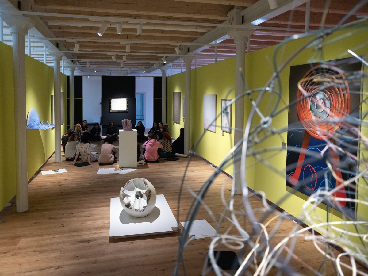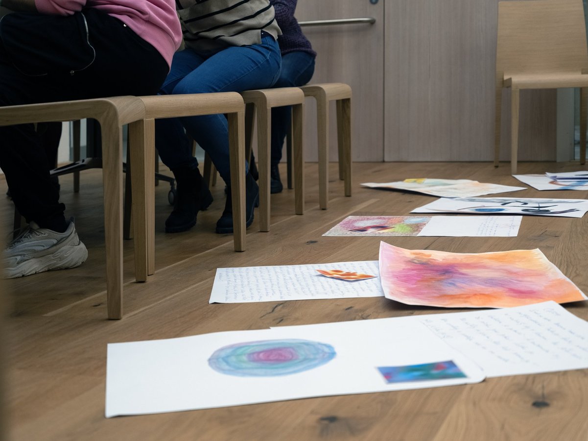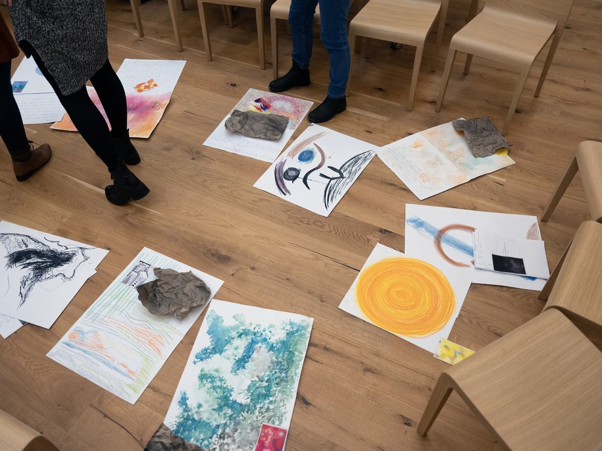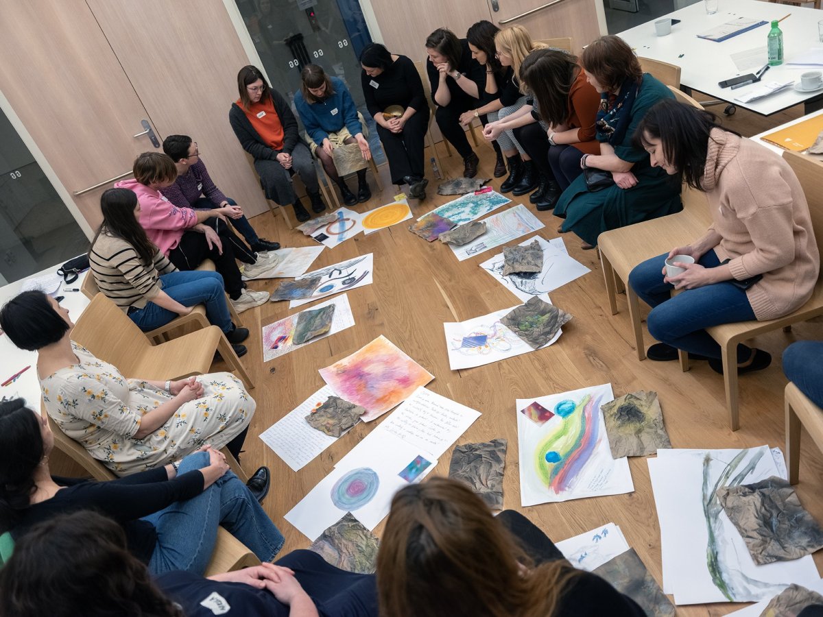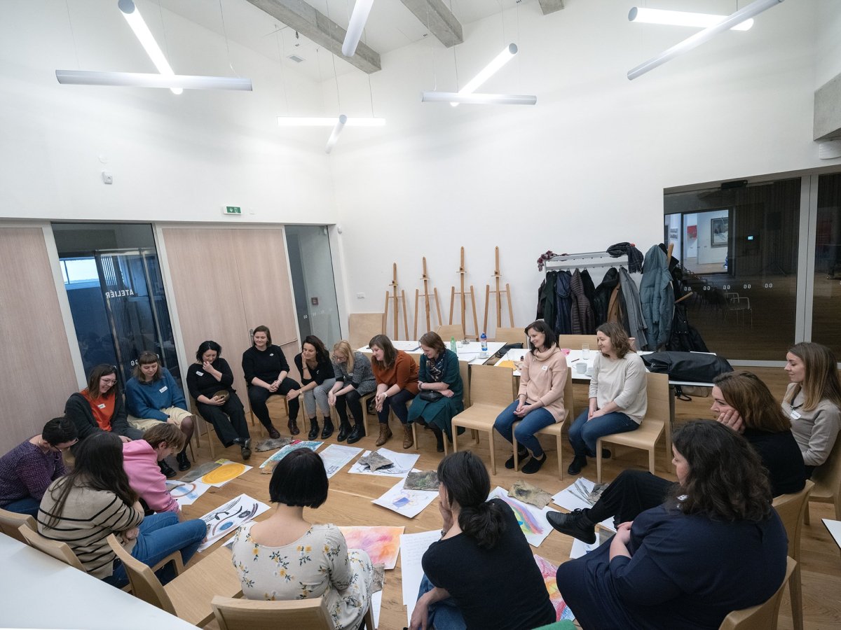 Dalším v řadě byl prožitkový workshop, který nabídl praktické tvůrčí postupy vycházející z artefiletiky a tvůrčího psaní a ukázal možnosti galerie nebo muzea v oblasti pěstování wellbeingu a duševního zdraví návštěvníků. Při práci se účastníci inspirovali obrazy z expozice Gočárovy galerie v Pardubicích a vyzkoušeli si konkrétní metody blízké postupům expresivních terapií, jež lze uplatit i v běžné edukační praxi. Workshop vedla doc. Petra Šobáňová, výtvarná pedagožka a didaktička, jež s expresivní interpretací a artefiletickými metodami pracuje na katedře výtvarné výchovy PdF UP v Olomouci. Je také autorkou úspěšného projektu Pečuji o sebe, který je věnován duševnímu zdraví a obohacuje pregraduální přípravu učitelů a muzejních edukátorů.