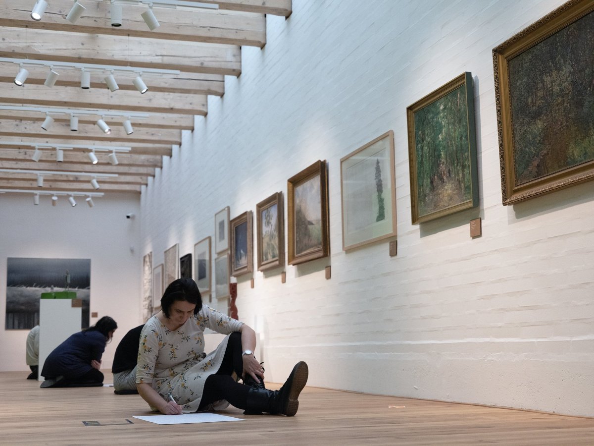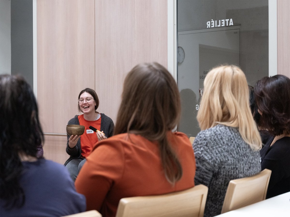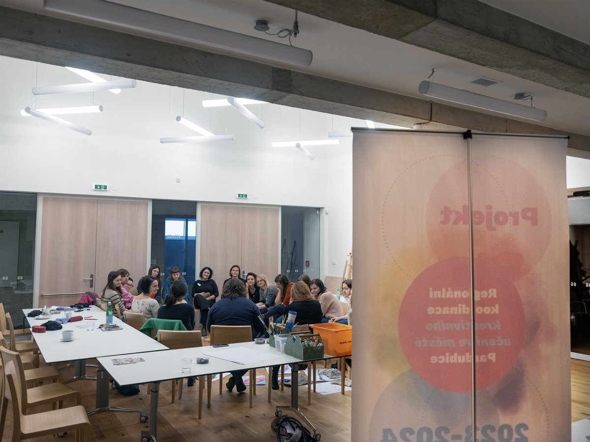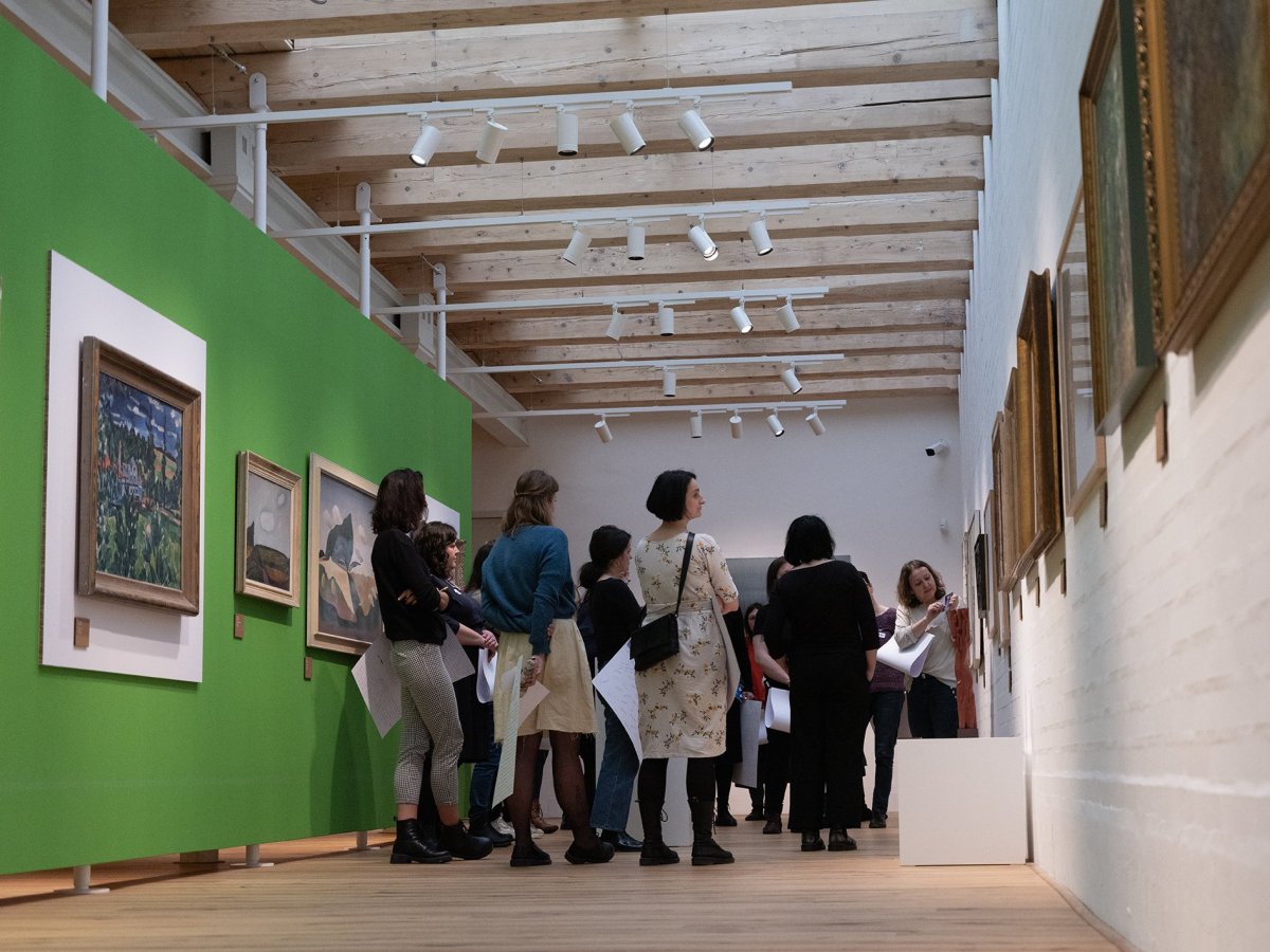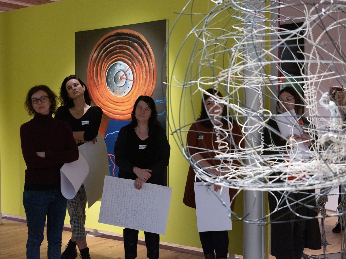 Dalším v řadě byl prožitkový workshop, který nabídl praktické tvůrčí postupy vycházející z artefiletiky a tvůrčího psaní a ukázal možnosti galerie nebo muzea v oblasti pěstování wellbeingu a duševního zdraví návštěvníků. Při práci se účastníci inspirovali obrazy z expozice Gočárovy galerie v Pardubicích a vyzkoušeli si konkrétní metody blízké postupům expresivních terapií, jež lze uplatit i v běžné edukační praxi. Workshop vedla doc. Petra Šobáňová, výtvarná pedagožka a didaktička, jež s expresivní interpretací a artefiletickými metodami pracuje na katedře výtvarné výchovy PdF UP v Olomouci. Je také autorkou úspěšného projektu Pečuji o sebe, který je věnován duševnímu zdraví a obohacuje pregraduální přípravu učitelů a muzejních edukátorů.