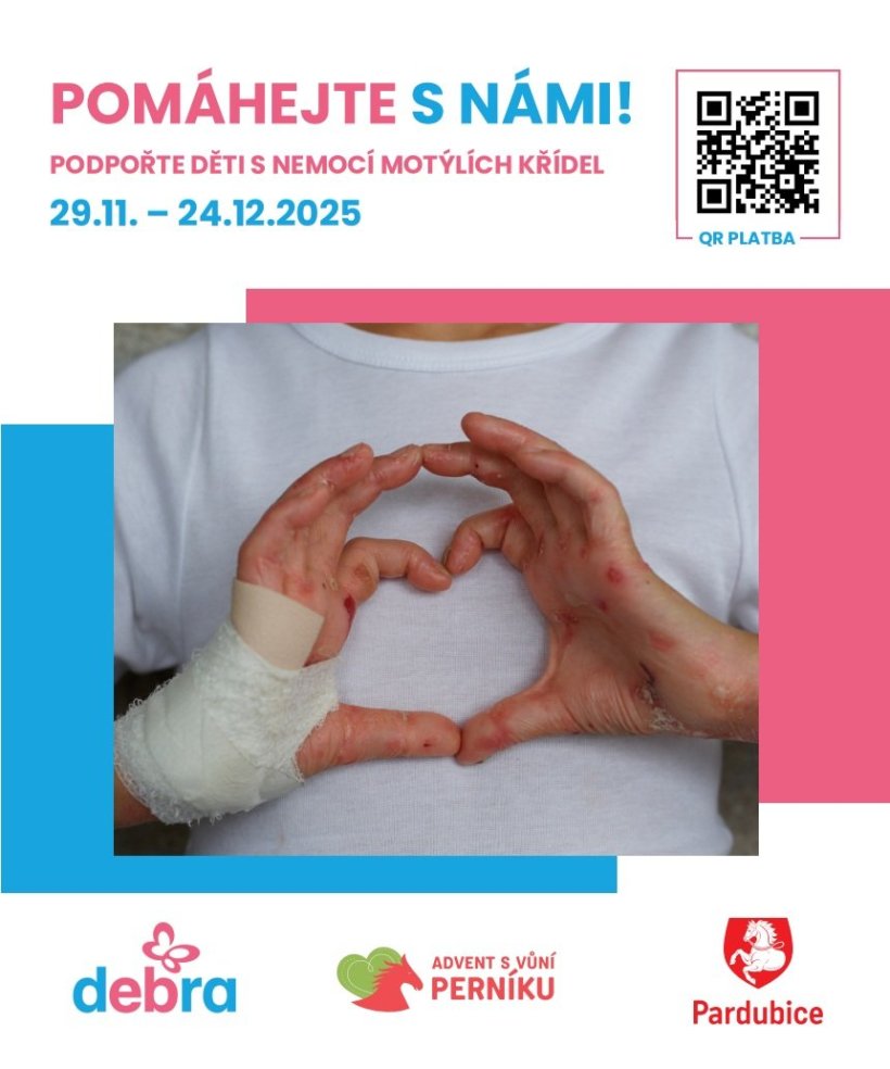 Jeden z adventních víkendů město tradičně věnuje nejen těm, kteří pomáhají, ale hlavně lidem, kteří pomoc potřebují. Letos město Pardubice podpoří organizaci DEBRA ČR, která pomáhá lidem s tzv. nemocí motýlích křídel.