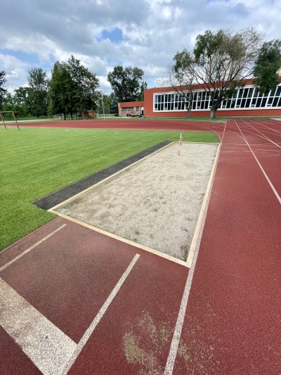 - Menší tartanové hřiště uvnitř běžeckého oválu
