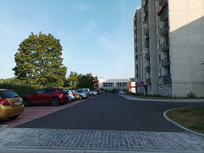 Komunikace byla zachována ve stejných parametrech, jednalo se pouze o rekonstrukci stávající vozovky. Pouze se změnil dopravní režim ze strany bezpečnosti, na zónu Tempo „30“. Celkem bylo vybudováno 86 parkovacích stání, z toho je 46 míst rekonstruovaných na rozměry dle ČSN 73 6056, a 40 vzniklo nově, a to 14 kolmých parkovacích stání v zeleni, na pozemku parc. č. 409/34, podél plotu u objektu tělocvičny školy, a dále 18 kolmých parkovacích stání, v prodloužení stávajícího parkoviště u čp.1006-1007. Zbývajících 8 stání vzniklo na úkor stávajících betonových ploch, užívaných neoficiálně pro parkování.