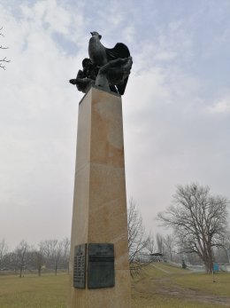 Vysoká plastika znázorňující holubici jako symbol míru se stala poznávacím znakem celého sídliště Závodu míru, které bylo dokončeno v roce 1978. Vznik samotné sochy inicioval slavný cyklistický závod Míru, který v květnu roku 1979 v Pardubicích začínal a končil své etapy. Plastika sochaře Štěpána Kotrby je vysoká 4,5 metru a tvoří ji zkosený žulový sloup se samotným sousoším holubice vylétávající z rozevřených dlaní. Sousoší je odlito z bronzové slitiny. Celá figurativní scéna je vystižena velice realisticky. Plastika byla původně umístěna při samém vjezdu na sídliště. Bronzová deska s deseti vítězi závodu Míru u paty sloupu byla osazena v roce 1987. V roce 1997 se rozhodlo o jejím přesunu z důvodu blížících se developerských prací na blízkém bytovém komplexu Poseidon. Symbol celého sídliště se tak přesunul do travnaté plochy uvnitř silniční točny.