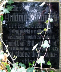 Hrob lemovaný pískovcovou obrubou, zatravněný. V záhlaví hrobu je osazen pískovcový pomník se segmentově ukončeným vrcholem. Na čelní straně osazena pamětní deska z černého opaxitu s vyrývaným nápisem v šedé barevnosti. Nad deskou je v ose fotografie vojáka na oválném porcelánovém medailonu. Text zní: „Zde v Pánu odpočívá / Antonín Pazourek / c. a k. četař II.18.pěšího pluku (stroj.pušek) a majitel čtyř záslužných medailí za udatnost / Zemřel 1. září 1918 v stáří 22 let.“