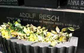 Hrobové místo vysypané mramorovou drtí je obroubeno žulovým základem se dvěma stupni u vstupu vytvořeného ve středu jednoduché obvodové balustrádě ze sloupků a překladů z černé leštěné žuly. V záhlaví hrobu je pomník z černé leštěné žuly. Z odstupňovaného soklu vyrůstají po stranách kanelované sloupy s prostou kubickou hlavicí, překlenuté překladem s nápisem „Rodina Reschova“. V nice jsou umístěny 3 ks uren z černé žuly osazené na soklících s nápisy odkazujícími na rodinné příslušníky. V ose soklu pomníku je nápis připomínající padlého Adolfa Resche. Nápisy jsou sekané a zvýrazněné bílou barvou, s textem: "Adolf Resch / bankovní úředník zemř. 6. 9. 1914 na srbském bojišti stár 24 r. ".