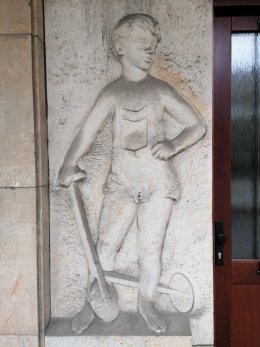 Reliéf nad domovními dveřmi v ul. Palackého.
