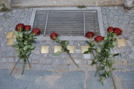 Dům od 2. poloviny 19. století náležel rodině Marka Österreichera, který se výrazně zasloužil o ustavení pardubické židovské náboženské obce a výstavbu synagogy. Na počátku okupace v domě žili vdovy a někteří potomci Markových synů Gustava a Bertholda. Všichni členové rodiny byli během roku 1942 a 1943 deportováni do Terezína. Vdovy Leokádie (nar. 1857) a Berta (nar. 1866) v Terezíně dožily, ostatní členové rodiny byli v roce 1943 zavražděni v Osvětimi. V domě čp. 77 žila Markéta Zenkerová (nar. 1893) pocházející z Bečova nad Teplou, která v Pardubicích nalezla nový domov po odstoupení pohraničí Německu v důsledku Mnichovské dohody. Markéta byla deportována dne 9. 12. 1942 transportem Cg z Pardubic do Terezína a odtud po necelých dvou letech transportem Eg dne 12. 10. 1944 do Osvětimi, kde zahynula. Kameny zmizelých - v originále Stolpersteine jsou dlažební kostky s mosazným povrchem, nesoucí text se vzpomínkou na oběti holokaustu a nacistického režimu. Kameny jsou vsazené do chodníku před domy obětí. Stolpersteiny jsou projektem německého umělce Guntera Demniga, který první kámen instaloval r. 1992 v Kolíně nad Rýnem. V ČR se první kámen objevil v roce 2008. Pardubice se k projektu připojily v roce 2020. Každá oběť má svůj vlastní Stolpersteine, je tomu tak proto, že ve vyhlazovacích táborech byly vězňům sebrány jejich jména, která byla nahrazena pouhými čísly bez identity a minulosti. Projekt tak vrací každému umučenému člověku jeho vlastní jméno a tím i jeho důstojnost.