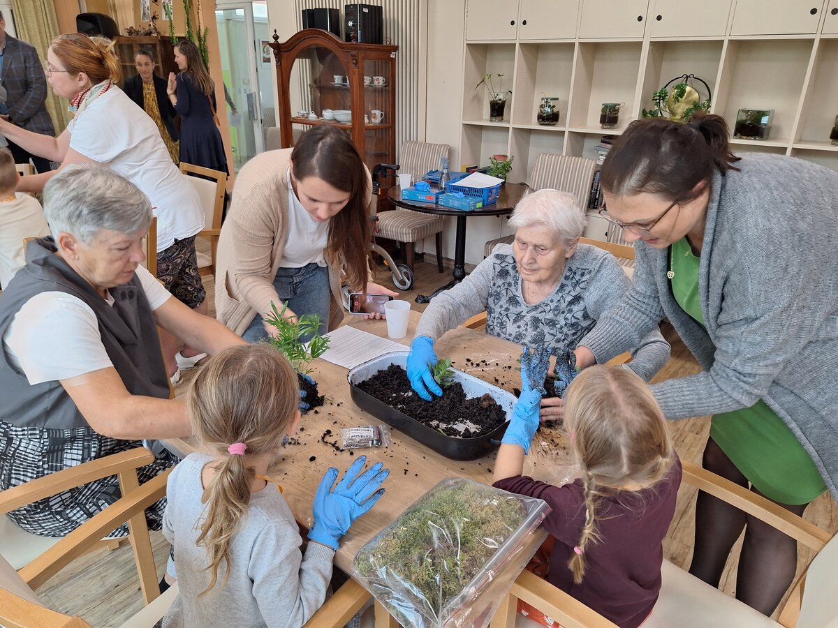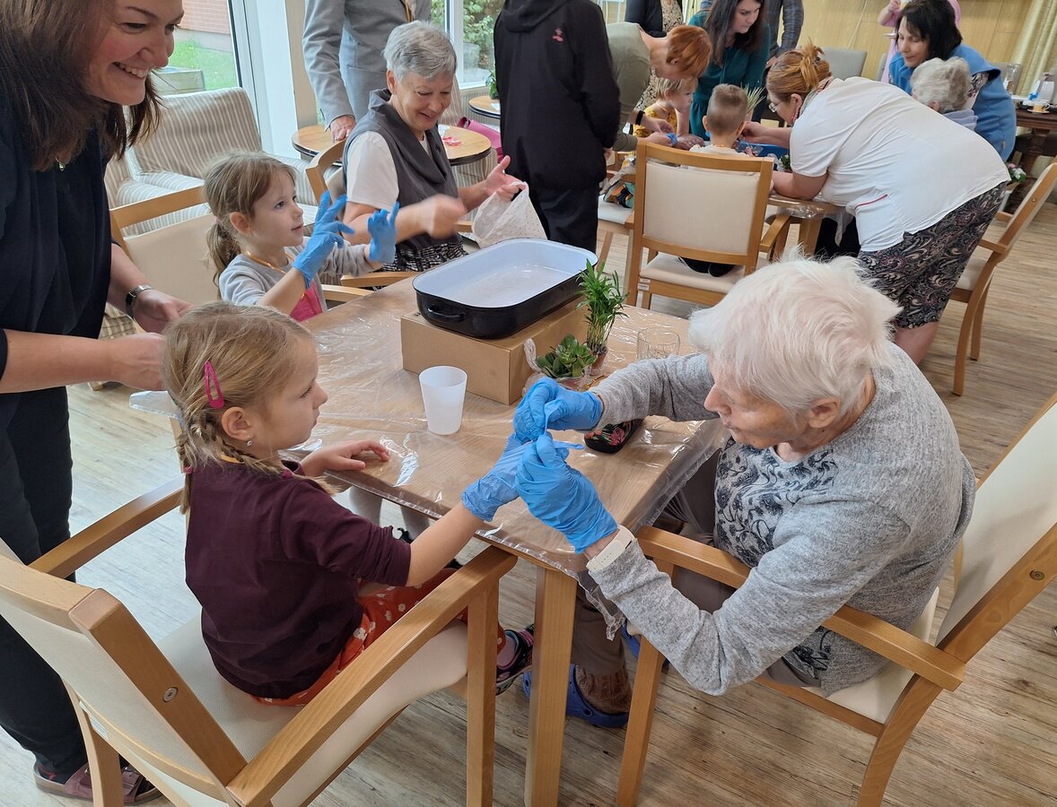 Návštěvy dětí jsou pro seniory příjemným zpestřením jejich času, pro děti je to zas možnost, jak nejen rozvíjet vlastní fantazii. „Děti se prostřednictvím hry učí komunikovat, získávají informace o tom, jaký byl svět dříve, jelikož jim senioři vyprávějí své zážitky. Děti všemi zmíněnými aktivitami a činnostmi pomáhají udržet klienty domova aktivní, do projektu je zapojeno celkem 15 dětí, návštěvy u seniorů realizujeme jedenkrát během 14 dnů,“ dodává Michaela Daňková ze soukromé mateřské školy Safari Baby Club s tím, že poslední návštěvu po slavnostním předání certifikátu, drobných dárečků pro seniory a medailí pro děti završila společná tvorba kokedam.