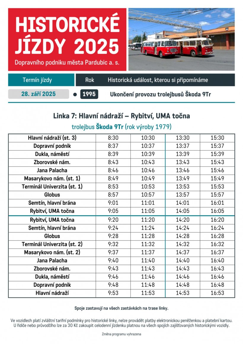 Neděle 28. září 2025 - výročí 30 let od konce provozu trolejbusů Škoda 9Tr