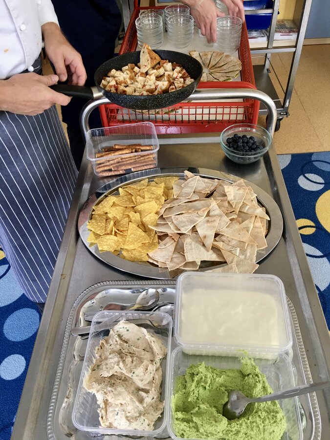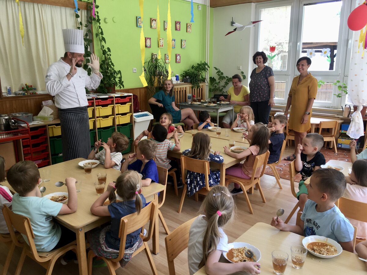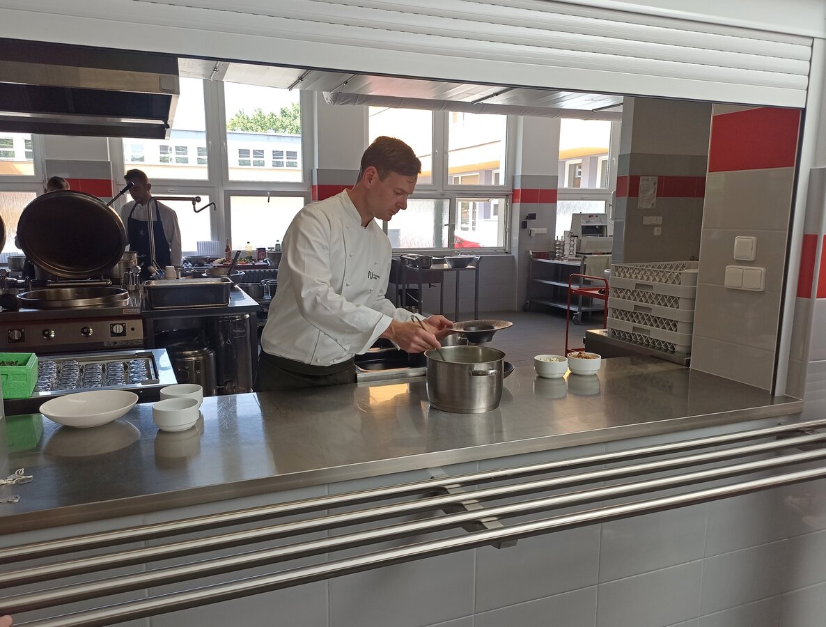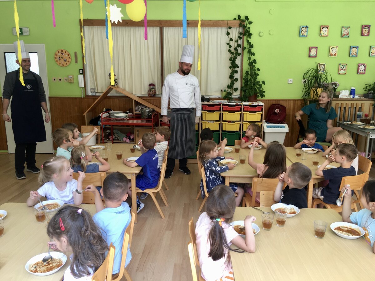 Oba šéfkuchaři se svým týmem však byli ve školách přítomni od samého rána, kdy zde vystřídali místní personál kuchyně, aby dětem sami uvařili. „V ZŠ Prodloužená je čekala příprava jídel pro celkem 475 strávníků, věřím, že i pro takové profesionály, kterými pánové Křížek a Roith bezpochyby jsou, to muselo být opravdu náročné. Nicméně se s tím vypořádali skvěle, děti byly z jejich přítomnosti nadšené a překvapené, že jim vaří muži. Šéfkuchaři do jídelníčku zařadili jídla, jako krém z karamelizovaného celeru, cizrnové kari s jasmínovou rýží a kuřecí na paprice s tarhoňou,“ doplňuje Dana Šťásková z odboru školství, kultury a sportu pardubického magistrátu, která se na organizaci obou workshopů podílela. Druhý gastroworkshop na MŠ Brožíkova byl pak zaměřen spíš na menší strávníky. Během dne zde kuchaři připravili celkem 158 jídel pro 130 dětí a 28 dospělých. Kromě ochutnávek variací hlavních jídel zaměřených na rostlinné bílkoviny se tentokrát zaměřili na svačiny, které jsou nedílnou součástí jídelníčku v mateřinkách a předvedli, jak do nich zakomponovat luštěniny, zeleninu či celozrnné potraviny. Pomazánky tak servírovali s nachos, grahamovými tyčinkami nebo celozrnnou tortillou. Největší úspěch měly dýňové lívance s cizrnou. Společným tématem našich jídelen je také neplýtvání, proto šéfkuchaři představili i pokrmy, které lze připravit v desítkách variací podle kuchyňských zásob – jako například dětmi oblíbená frittata.