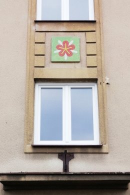 Mozaika z prefabrikovaných skleněných kostek se nachází na fasádě obytného domu č. p. 1258 a 1259 v ul. Na Okrouhlíku. Jedná se o mozaikový prefabrikát z přímočaře mačkaných kamenů kruhového průřezu o průmětu 10 a 5 mm, dva panely jsou o rozměru cca 60 x 30 cm a dva rozměru 90 x 30 cm.