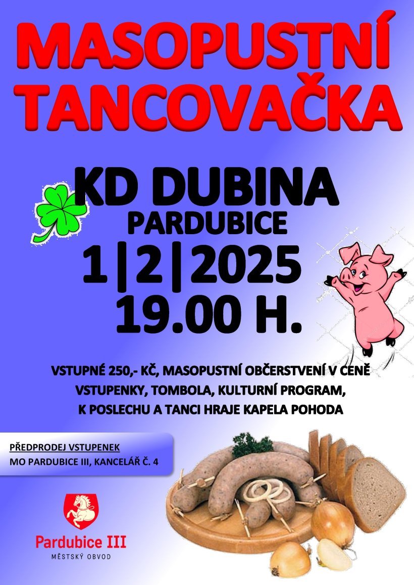 Aktuality MASOPUSTNÍ TANCOVAČKA už 1. 2. 2025 Lístky k zakoupení již pouze na místě před zahájením! Všichni jste srdečně zváni!