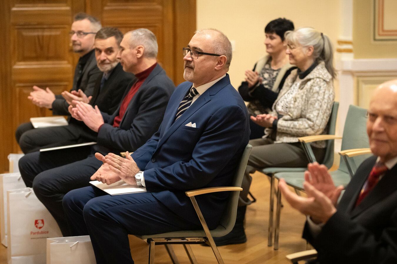 Medaile města Pardubice si z rukou primátora převzali Roman Krmenčík, který jako dlouholetý kapitán, fundraiser a mecenáš významně přispěl k úspěchům extraligového šachového týmu Pardubic, známý aranžér, skladatel a dirigent Vladimír Popelka, ředitel Východočeského muzea Pardubice Tomáš Libánek a ředitel Státního okresního archivu v Pardubicích Ladislav Hloušek. „Jsem opravdu rád, že jsme se tu konečně mohli sejít v širší společnosti, jelikož v předchozích letech nám slavnostní předávání poněkud zkomplikovala pandemie covidu. Bylo mi ctí vyznamenat ty osobnosti, které se staly pro město nepostradatelné a věnovaly značnou část svého času tomu, aby pomohly městu s rozvojem, ať už v oblasti kultury, vědy či medicíny,“ pronesl primátor města Jan Nadrchal, který každého z oceněných osobně přivítal během slavnostního aktu ve Společenském sále radnice. Oceněn za dlouholetou práci byl také Vladislav Rule, přednosta psychiatrického oddělení pardubické nemocnice, který si ocenění převezme dodatečně. Čestným uznáním města byli oceněni Jan Frolík a Jiří Šindelář, kterým bylo uznání uděleno za zviditelnění města archeologickým průzkumem pernštejnsko-piastovské hrobky v kostele sv. Bartoloměje.