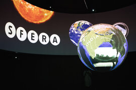 Audiovizuální projekce představující svět vědy, Země i vesmíru.