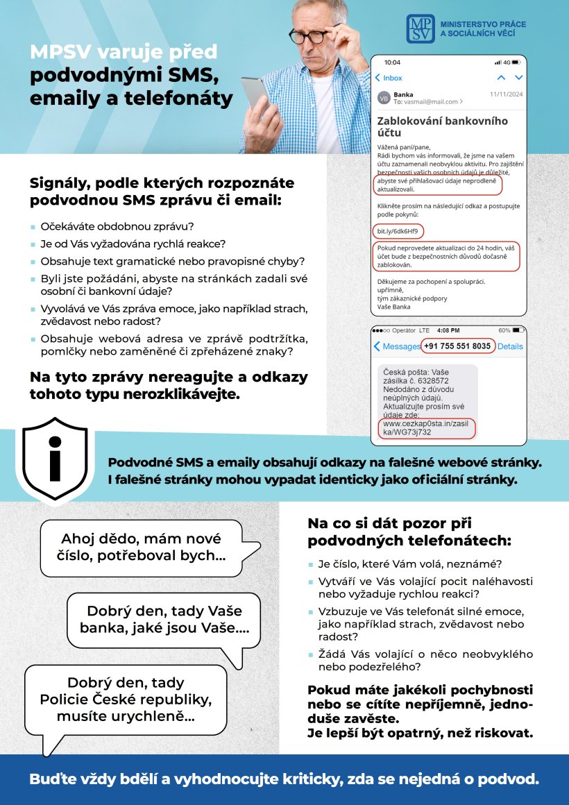 MPSV varuje před podvodnými SMS, emaily a telefonáty
