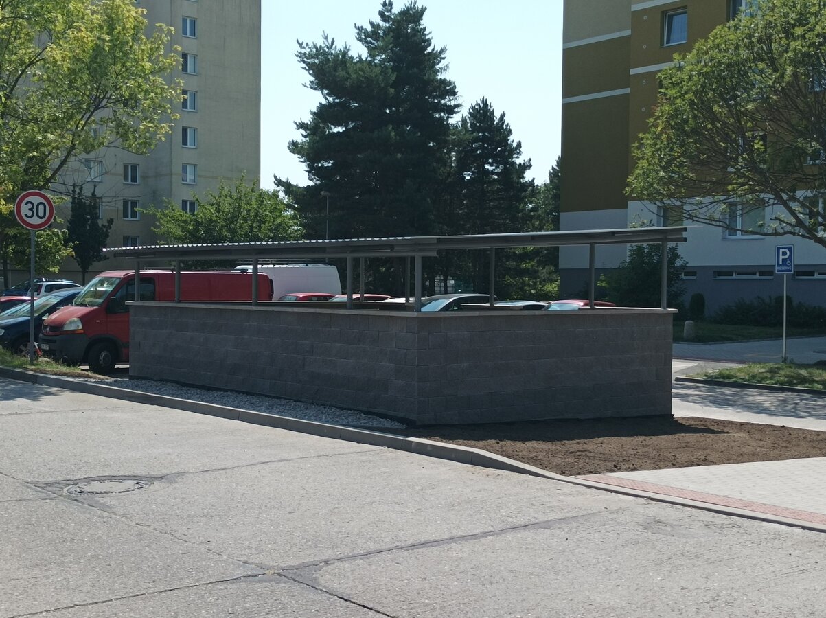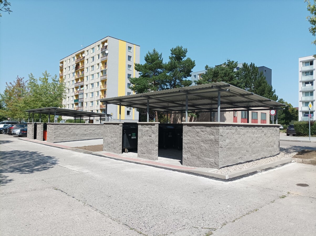 - Výstavba 2 kontejnerových přístřešků (každý pro 9 ks kontejnerů o objemu 1 100 l).