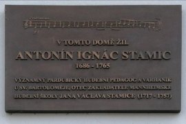 Pamětní deska je osazená na fasádě měšťanského domu č.p. 56 na Pernštýnském náměstí a upomíná na život hudebního pedagoga a varhaníka Antonína Ignáce Stamice. Tento znamenitý hudebník chránil a zveleboval kulturu ve městě, stal se zdejším kantorem se zájmem především o dobrou chrámovou hudbu. Svým postavením kantora a hudebníka získal obdiv celých Pardubic i okolí až do roku 1709, kdy se přestěhoval do Německého Brodu.