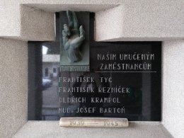 Pamětní deska připomíná oběti II. světové války a je umístěna při vchodu do nemocnice v Kyjevské ulici. Text na desce zní "Věrni zůstaneme. Našim umučeným zaměstnancům František Tyc, František Řezníček, Oldřich Krampol, MUDr. Josef Bartoň.1939-1945"