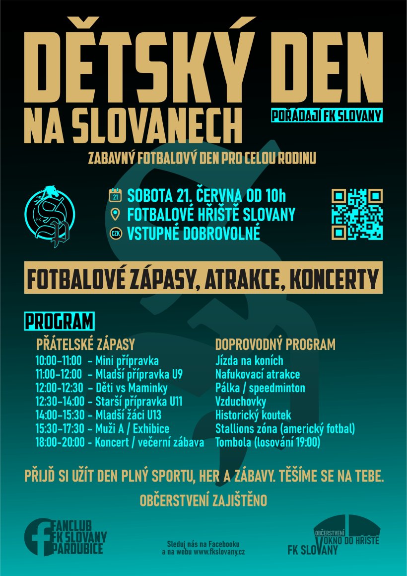 Fotbalový klub FK Slovany Pardubice srdečně zve všechny děti, rodiče i prarodiče na Dětský den na Slovanech, který se uskuteční v sobotu 21. června od 10:00 hodin na fotbalovém hřišti Slovany.