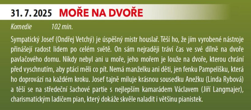 Aktuality PRÁZDNINOVÉ KINO NA DUBINĚ - ČTVRTEK 31. 7. 2025 MOŘE NA DVOŘE / promítání v červenci od 21.30 hodin
