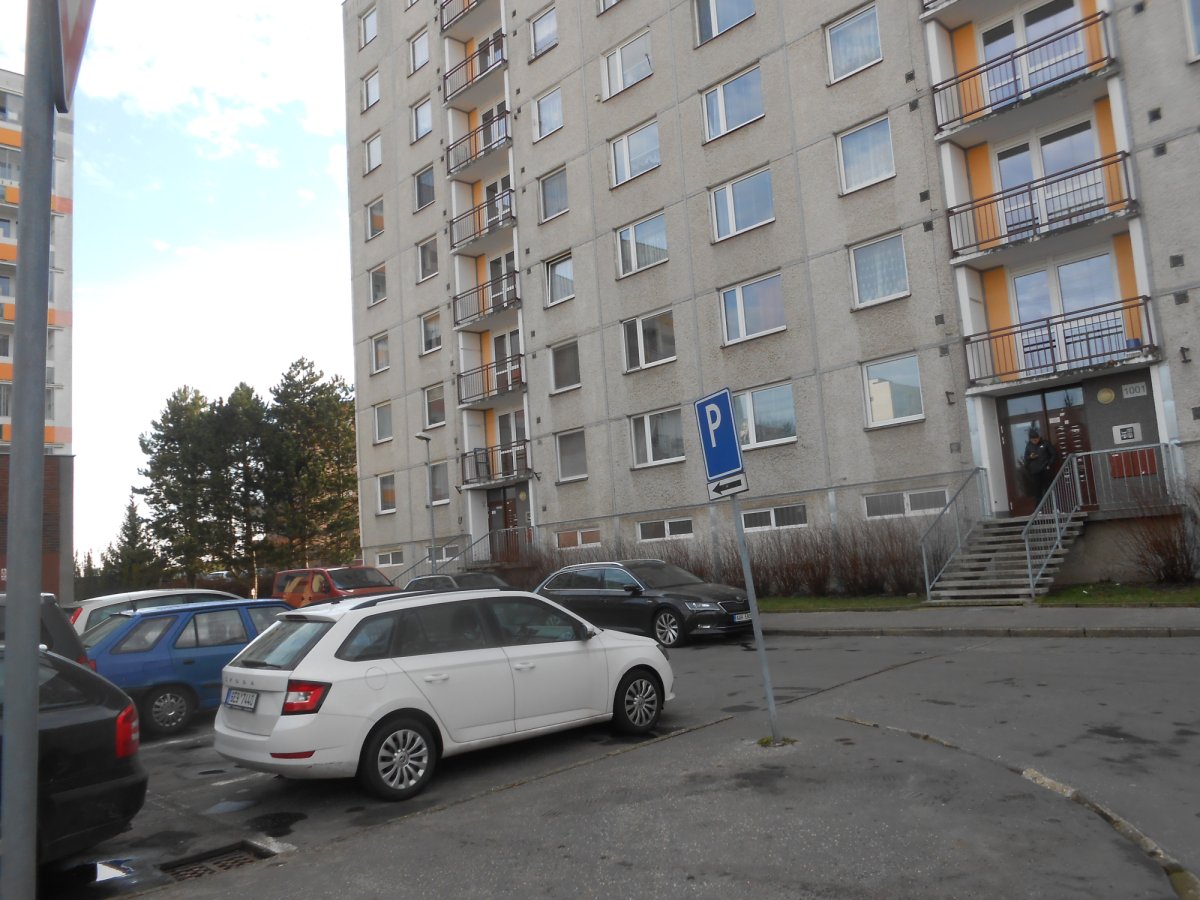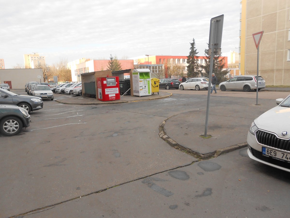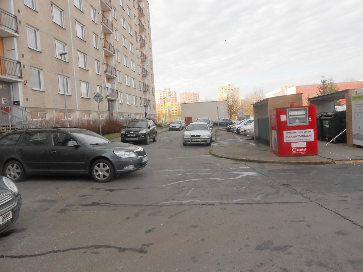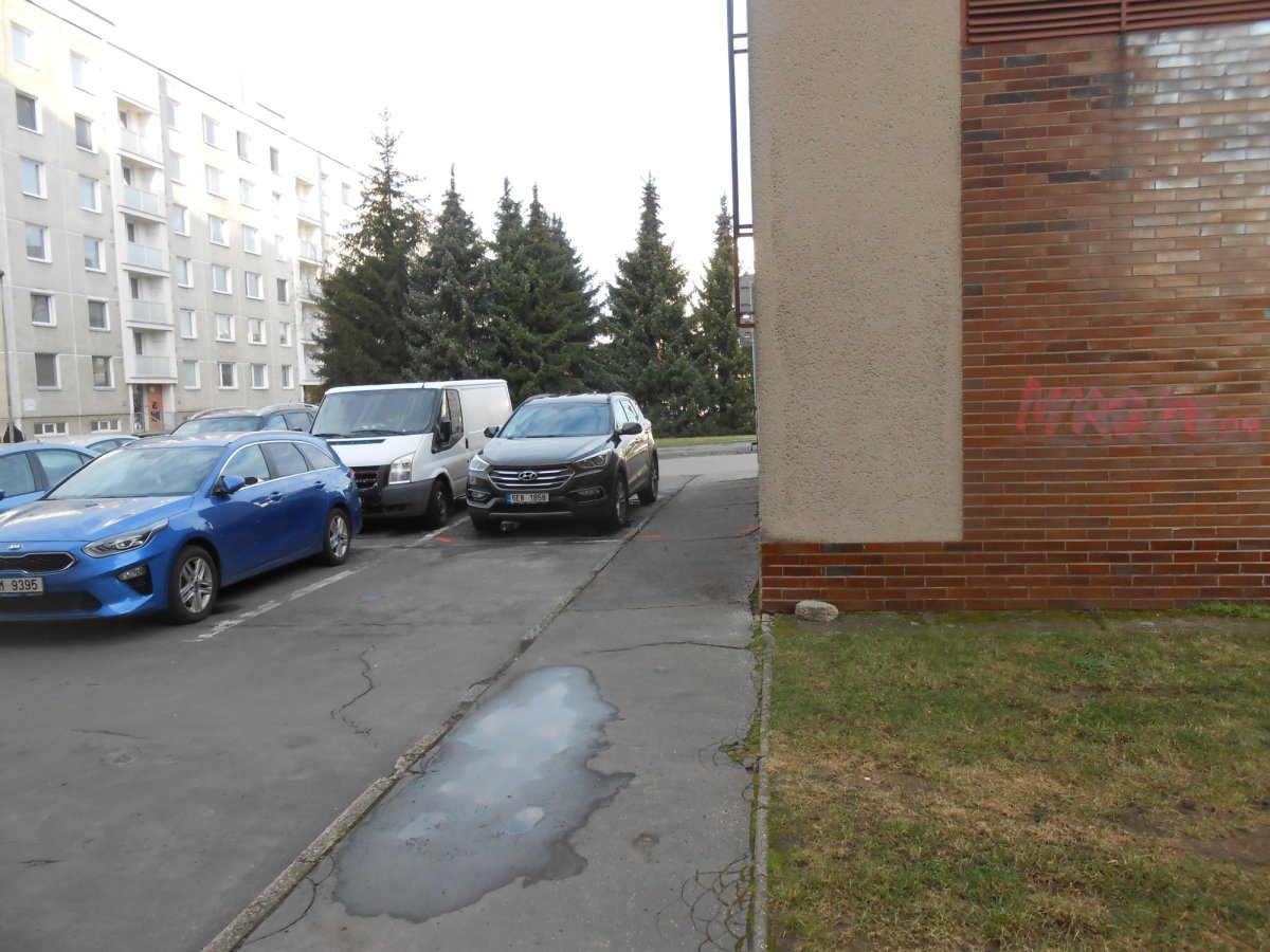 V rámci rekonstrukce dojde k úpravě parkovacích ploch z důvodu usměrnění živelného parkování. Je navržena úprava stávajícího parkoviště před bytovým domem čp. 1000–1004 a výstavba nových parkovacích stání v blízkosti domu čp. 979. Návrhové vozidlo – osobní vozidlo délka 4,75 m a šířka 1,75 m. U čp. 979 v ul. Erno Košťála dojde k doplnění parkovacího stání s kolmým řazením po pravé straně MK ve směru k čp. 1005 – doplněno celkem 7 stání + 2 stání pro imobilní. Po levé straně je navrženo 18 parkovacích stání s kolmým řazením + 1 stání s kolmým řazením pro imobilní. Úprava šířky MK min 6,00 m mezi obrubami – obousměrný provoz. Základní šířka 2,50 m, krajní stání rozšířena o 0,25 m. V základní délce 4,50 m bez převisu vozidla (0,50 převis vozidla nad chodník). Úprava parkovacího stání po levé straně – navrženo celkem 18 parkovacích míst s kolmým řazením + 1 imobilní. Dále je navržena úprava stávajícího parkování před bytovým domem 1000–1004. Dochází k úpravě stávající komunikace parkoviště. Dochází k úpravě napojení na místní komunikaci. Dochází k novému napojení na dopravní infrastrukturu, respektive k posunutí stávajícího sjezdu – napojení na místní komunikaci – dochází k posunutí stávajícího parkoviště – stávající sjezd mezi čp. 1002–1003 se novým návrhem ruší. Komunikace parkoviště se navrhuje jednosměrná (ve směru podél čp. 1004 k čp. 1000) se stávajícím vjezdem u trafostanice (pozemek parc. č. 814) a posunutým výjezdem vedle stávající trafostanice (pozemek parc. č. 925). Napojení bylo prověřeno rozhledovým trojúhelníkem dle ČSN 73b6102 ed. 2 uspořádání A – návrhové vozidlo 2, dovolená rychlost 30 km/hod, délka rozhledu XB 45 m, XC 35 m – vyhovuje. Komunikace parkoviště se navrhuje v délce 86,68 m – začátek napojení v ose MK, konec napojení u obruby MK. Příčný sklon jednostranný o velikosti 2,5 – 4 %. Komunikace parkoviště v šířce min 3,50 m – jednosměrný provoz. Kryt dlážděný. Parkovací stání po levé straně s šikmým řazením pod úhlem 45 st. v základní šířce 2,50 m a délce 4,30 m bez převisu vozidla – 13 stání, po pravé straně s podélným řazením 2+3+1 stání – způsob parkování jízdou vpřed. Parkovací stání se navrhuje s krytem dlážděným z betonových dlažeb skladebných tvaru parketa barvy červené.