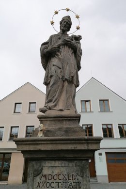 Socha sv. Jana Nepomuckého je připomínána již v roce 1719, kdy byl mučedník blahořečen. Během pruské okupace města za druhé rakouské války byla socha stržena. Podle nápisu na soklu došla socha k újmě 20. října 1744, kdy na Bílém předměstí probíhaly prudké srážky s rakouskými jednotkami. Socha byla opravena ještě ve 40. letech 18. století, ale její mladší osudy byly pohnuté: několikrát se stěhovala. Ve své současné poloze je od dubna 1842. Ještě v roce 1918 byla opětovně rozbita a musela prodělat řadu restaurování (naposledy v roce 2013).