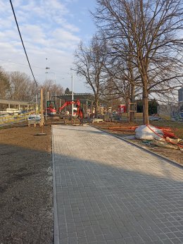 Dělníci pracující na výstavbě terminálu u Univerzity Pardubice již mají většinu prací v západní části teminálu dokončenou. Východní část ještě čeká položení střešního pláště, v obou částech pak finišuje dláždění přístupových komunikací. Práce v hodnotě přes 30 milionů korun by přitom měly být hotovy během června 2023.