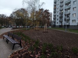 • Podél chodníků byl osazen nový mobiliář. Došlo k osazení 5 ks nových litinových laviček s umělohmotnými prkny délky 1,80 m (barvy mahagon). Lavičky jsou stejného typu jako ve vedlejším vnitrobloku čp. 1561-1563.