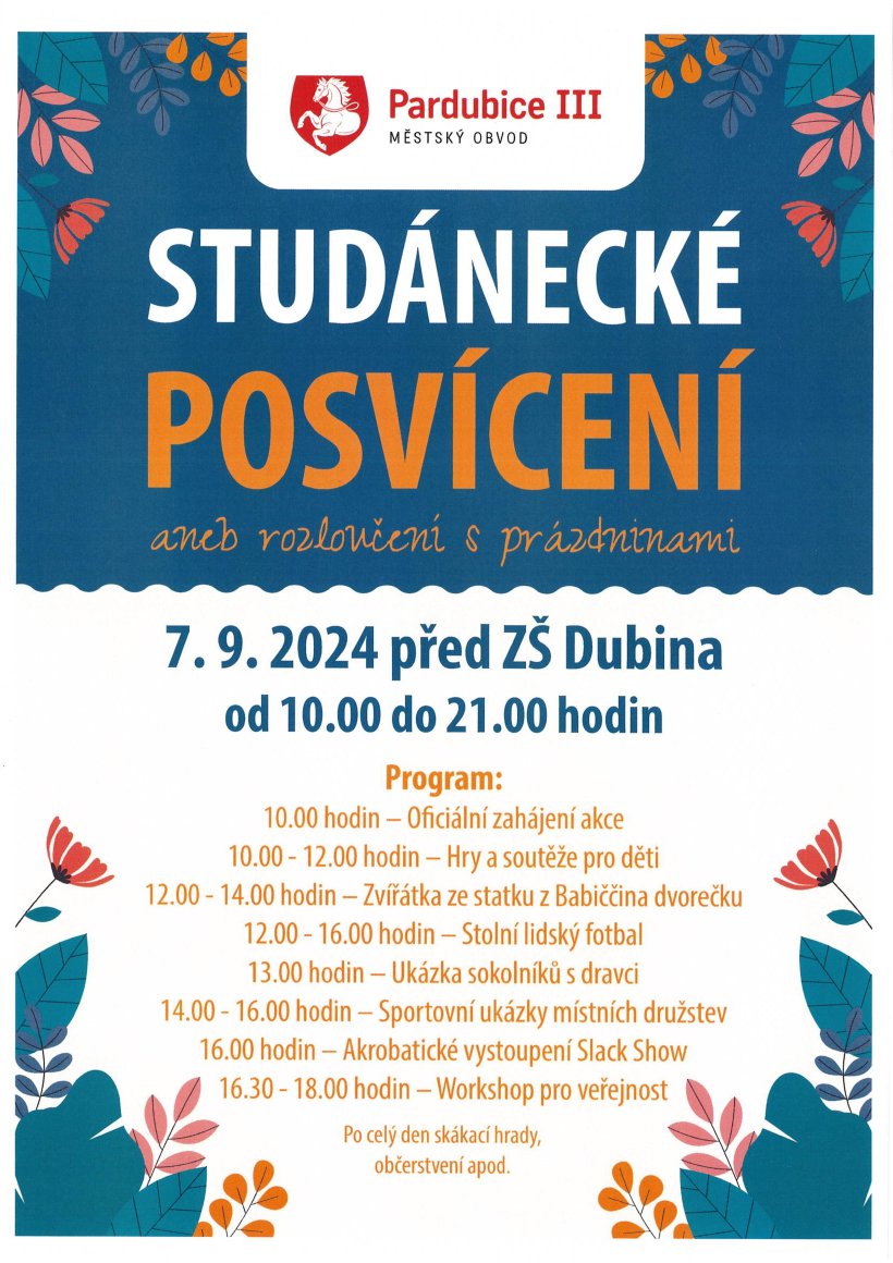 SOBOTA 7. 9. 2024 / od 10.00 do 21.00 hodin / centrální park před ZŠ Dubina