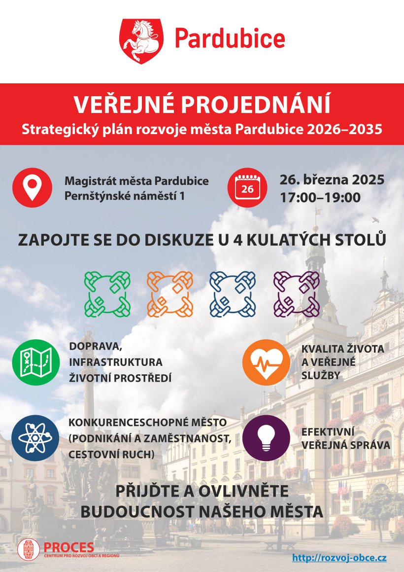 Aktuality VEŘEJNÉ PROJEDNÁNÍ - Strategický plán rozvoje města Pardubice 2026–2035 Magistrát města Pardubice, Pernštýnské náměstí 1 / 26. března 2025, 17:00–19:00 hodin Dokumenty PCE_VP1_FINAL PDF, 253.14 kB