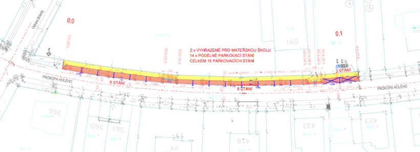 Výstavba parkovacích stání před areálem MŠ v ulici Prokopa Holého. Nově vzniklo 16 parkovacích míst.